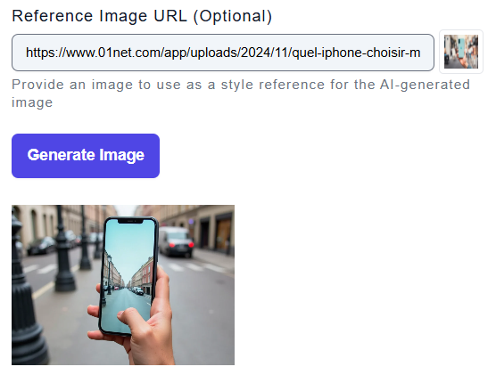 For example, if you provide a URL of an image showing a smartphone against a cityscape, the AI is more likely to produce a similar image.