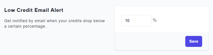 When your credits run low, a clear indicator now appears in your account, and you can also set up an email alert, customizable to any threshold you choose (10% by default).